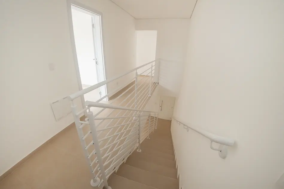 Os clientes nos trouxeram o terreno e o desejo de construir três casas geminadas que tivessem o melhor aproveitamento do espaço. Cada unidade conta com três quartos, sendo uma suíte, lavabo, e sala e cozinha integradas. Para a casa central, criamos diferenciais como sacadas nos quartos e uma claraboia no banheiro, permitindo que o banho fosse também um momento de contemplar o azul do céu, ou o brilho das estrelas.